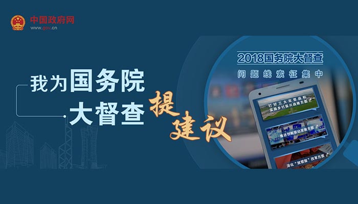 为做好2018年国务院大督查工作,充分倾听人民群众呼声,主动接受社会监督,从7月10日至9月10日,国务院办公厅督查室会同中国政府网开展“我为大督查提建议”活动,欢迎您反映政策措施不落实、政府管理服务不到位以及有关部门和单位不作为慢作为乱作为等问题,...